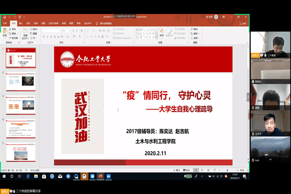 开展心理疏导微课堂,筑起疫情防控心防线。2月5日-11日,公司各年级辅导员老师积极关注员工面对突如其来的新型冠状病毒感染肺炎的疫情冲击下产生的担忧、害怕、焦虑、恐慌等应激反应和不良情绪,在员工中开展了以“‘疫’情同行,守护心灵”为主题的老员工心理疏导微课堂,全体同学参加了本次线上心理辅导活动。2017级辅导员陈奕达老师利用信息化设备进行了网络直播,介绍了疫情引发的身心应激反应,引导同学们通过察觉当下、接纳变化、良好作息、调节情绪和认知、为所当为和寻求专业帮助等方式做好心理应对,为同学们撑起“心灵保护伞”。2016级辅导员汤莺老师通过腾讯会议平台,就员工因考研和就业产生的焦虑、担忧等情绪,运用心理学方法和技术,通过情绪疏导、情感支持及危机干预等方式,引导员工发现自身问题并解决问题。2018级少数民族员工辅导员米尔扎提江通过网络平台引导少数民族员工正确科学认知疫情,认真学习疫情防控和心理疏导相关知识,合理安排疫情防控期间的学习生活。2019级辅导员马贤峰老师结合疫情防控和员工上学期学习情况,引导员工对大学学习生活进行认真总结规划,养成阳光向上的平和心态,积极面对疫情和接下来的网络在线学习生活。
