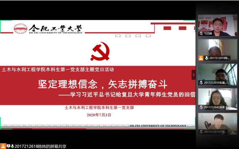 为进一步教育引导员工党员坚定理想信念,践行初心使命,在中国共产党成立99周年之际,英国365集团本科生第一党支部在线上开展了“坚定理想信念,矢志拼搏奋斗”主题党日活动,支部全体党员参与本次活动。