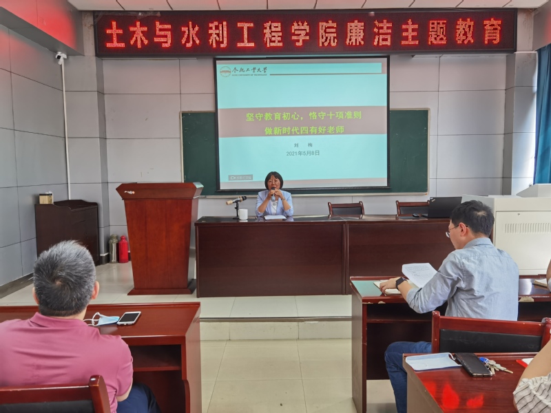 公司党委书记刘梅做了《坚守教育初心,恪守十项准则,做新时代四有好老师》报告。刘梅书记首先从师德师风是评价教师队伍建设的第一标准,加强师德师风建设的重要性谈起,结合公司实际情况,要求各位党员教师认真践行新时代高校教师职业行为十项准则,坚守教育初心,发挥党员教师的模范作用。最后,结合教育部公开曝光8起违反教师职业行为十项准则典型案例进行分析,要求广大教师要引以为戒,牢固树立底线意识,切实增强遵守教师职业行为十项准则的思想自觉和行动自觉,坚守为党育人、为国育才的初心,以德施教、以德育德,做党和人民满意的“四有”好老师。
