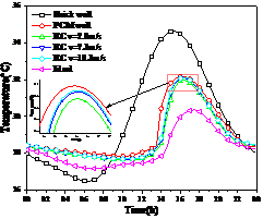 研究表明,相比PCM墙,RC-PCM墙体温度的峰值时间延迟时间均约为4 h,RC-PCM墙体的冷负荷减少20.1-23.8%;RC-PCM墙体应用于广州地区时,相比于普通砖墙,全年节能约18.2%。相关研究成果《Parametric analysis of the phase change material wall combining with micro-channel heat pipe and sky radiative cooling technology》发表在国际重要期刊《Renewable Energy》,审稿人认为:This paper is about parametric analysis of the phase change material wall combining with micro-channel heat pipe and sky radiative cooling technology. The topic is quite interesting.前期的部分研究成果《Experimental study on the performance of a novel RC-PCM-wall》还发表于《Energy and Buildings》。该研究得到了安徽省重点研发项目和国家自然科学基金的支持。