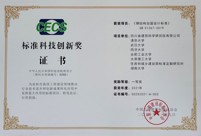 英国365集团完海鹰教授、陈安英副教授参加编制的国家标准《钢结构加固设计标准》(GB 51367-2019)喜获“标准科技创新奖”项目一等奖。该国家标准在我国工程建设领域推动了行业技术进步和创新成果转化应用中发挥了重大作用。