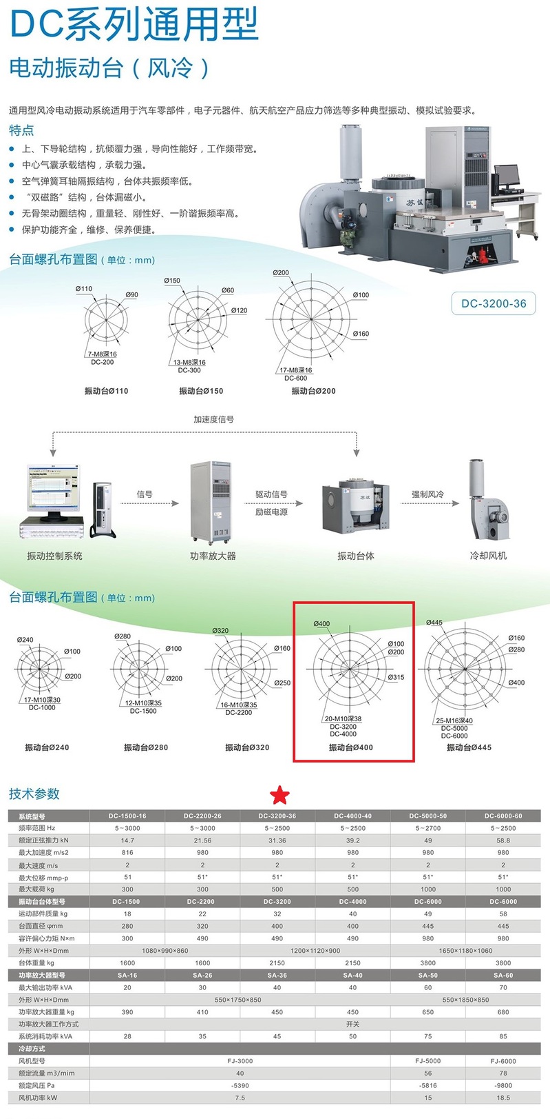 苏试试验集团股份有限公司制造的DC-3200型电动振动台,利用电磁感应原理激励台面高频振动,可实现水平振动或垂直振动,可广泛适用于国防、通讯、电子、汽车、家电等行业。