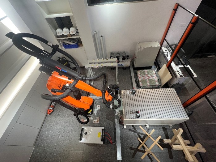 大界Kuka加工智能机器人系统由六轴机械臂1套、电主轴1套、工装平台1套、空压机及电气控制系统1套、刀具平台(含8套刀具)、数字孪生工业软件平台系统组成,主要用于木材、塑料等材料的铣削加工,包括铣削过程的三维建模、机器人铣削过程的(图形化)编程模拟、机器人自动执行铣削程序等内容。可用于智能加工和生产方面的科研和教学。
