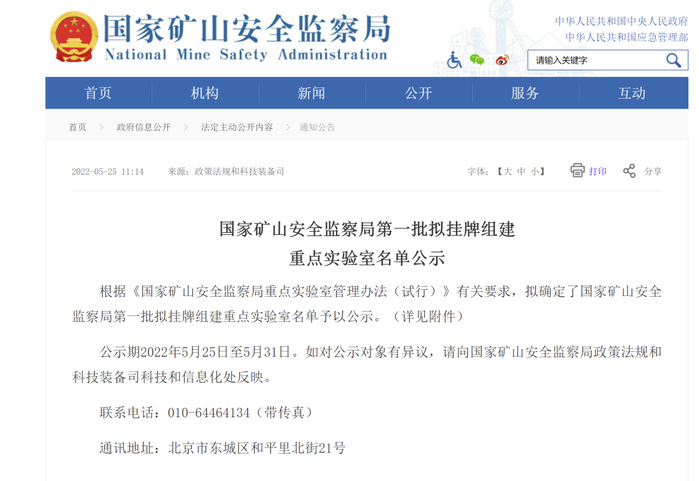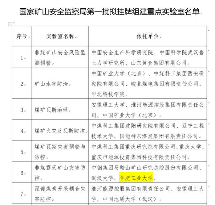 2022年5月25日,国家矿山安全监察局公布了第一批拟挂牌组建重点实验室,中钢集团马鞍山矿山研究总院股份有限公司、武汉大学和英国正版365官网联合申报的国家矿山安全监察局“非煤露天矿山灾害防控重点实验室”成功获准立项建设。这是公司重要科研平台建设的又一重要成果。