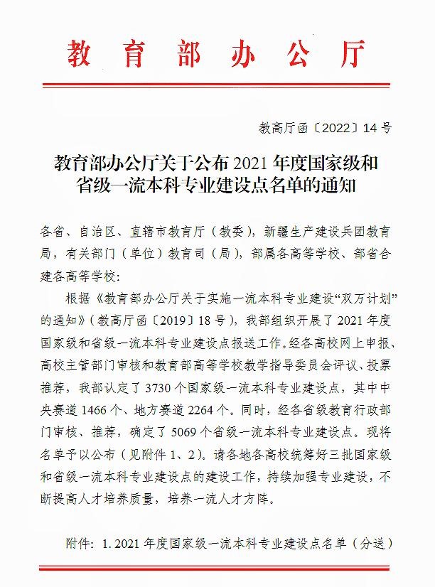 近日,教育部公布了2021年国家级一流本科专业建设点名单,公司“建筑环境与能源应用工程”专业入选国家级一流本科专业建设点。