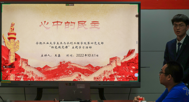10月6日,本科生第一党支部在屯溪路校区5号楼员工社区以“故音旧事,似是当年革命心”为主题开展红色配音活动。《建党伟业》《建军大业》《觉醒年代》等红色影片的经典片段在现场一一演绎。同学们通过生动形象的表演,重新演绎了老一辈领导人在党的生死存亡关头所表现出的智慧与抉择。