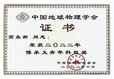 2022年中国地球物理学会第38届学术年会于12月5-9日在线上召开。公司英国365集团高永新教授获得2022年度“傅承义青年科技奖”,以表彰他在地震电磁异常机理研究方面做出的突出成绩。