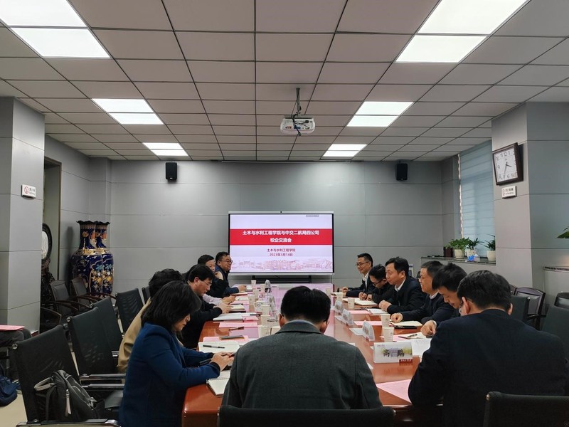 赵成立董事长结合公司宣传视频,详细介绍了中交二航局四公司的历史进程、发展规模、发展方向、优势项目和合作意向,对公司在智能建造、新型建筑工业化、固废资源再利用、重大基础设施等方面表达了科研合作意向,希望通过此次合作深化人才培养,发挥校企合作优势,实现校企共建双赢。