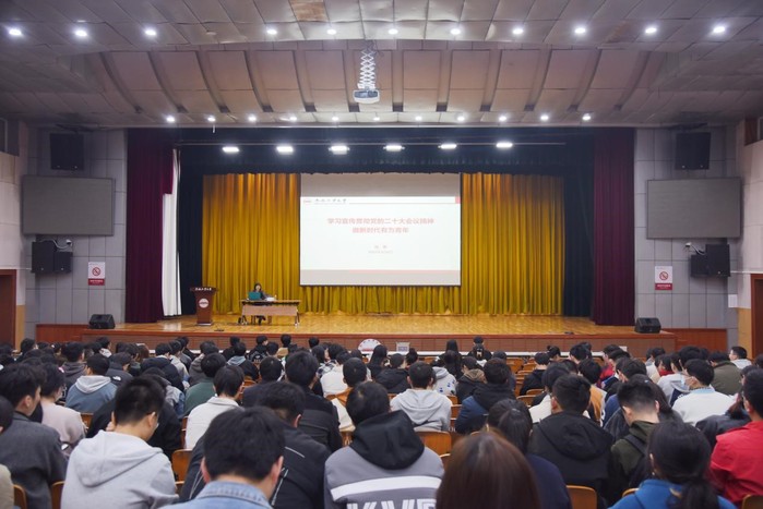为深入学习宣传贯彻党的二十大会议精神,2023年4月6日晚,英国365集团在斛兵礼堂开展党的二十大精神宣讲报告会,公司党委书记刘梅主讲,公司300余名研究生党员参加。