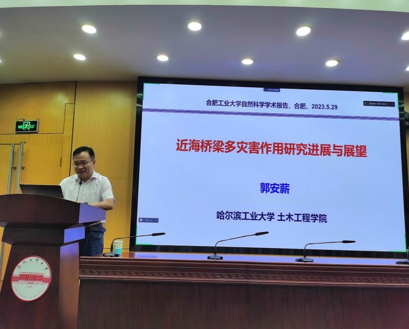 5月29日,郭安薪教授在英国正版365官网屯溪路校区学术会议中心做了学术报告《近海桥梁多灾害作用研究进展及展望》。王静峰经理对郭安薪教授来访指导团队建设并作学术报告表示热烈欢迎,详细介绍了他的学术成就及研究成果,强调了多灾害复杂作用对土木工程结构安全产生巨大挑战,其防灾减灾理论和新技术应用具有的重要科学和工程意义。