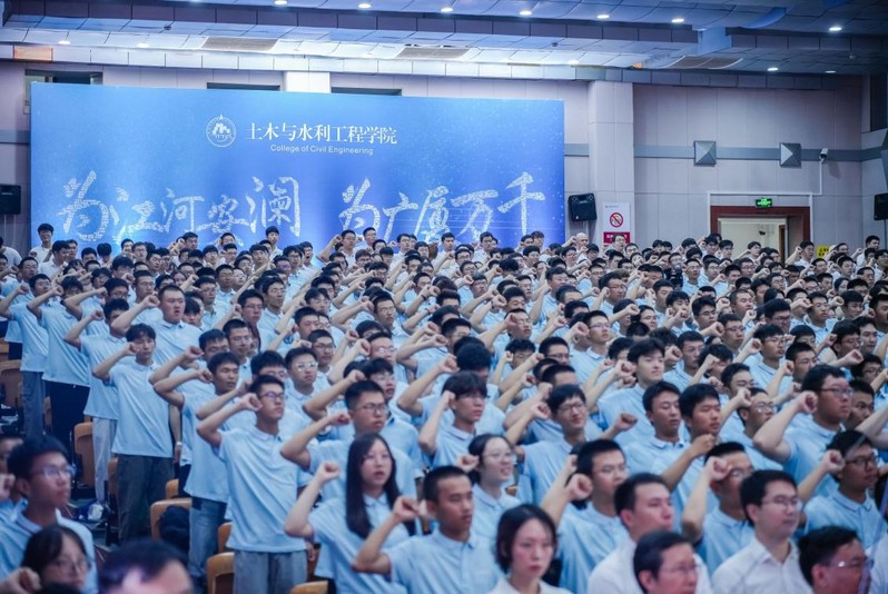 公司合唱团同学演唱了歌曲《如愿》,表达了对全体新同学大学学习生活的美好祝愿。公司2023级辅导员刘仲老师带领所有新生高举右拳、庄严宣誓,用掷地有声的誓言表达了土木学子“为江河安澜 为广厦万千”的使命担当。