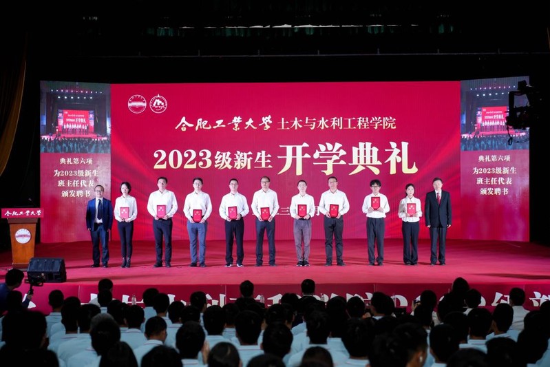 公司在相关行业、领域为2023级新生遴选出8位杰出代表作为公司本科生导师,其中6位行业导师、2位思政导师。典礼上,公司首批本科生行业导师代表、员工代表中国科学技术大学近代力学系吴尚犬教授深情回顾了在工大土木公司的美好且充实的大学时光,鼓励学弟学妹们做树立创新思维、培养合作精神、勇担责任使命的新时代土木人,用自身实际行动践行工业报国的使命。公司教师代表赵春风副教授结合自身的研究方向和教学科研经历,鼓励员工在土木公司这片热土上胸怀梦想、脚踏实地、努力学习,勇攀高峰,为实现自己的人生目标而不断前行。测绘科学与技术专业2023级研究生褚超群,合肥校区土木类2023级5班本科生叶华才,宣城校区城市地下空间工程2023级5班本科生陈言代表所有新生分享了进入工大的学习生活感受,立志在机遇与挑战并存的新征程中,追逐青春梦想,谱写人生精彩篇章。