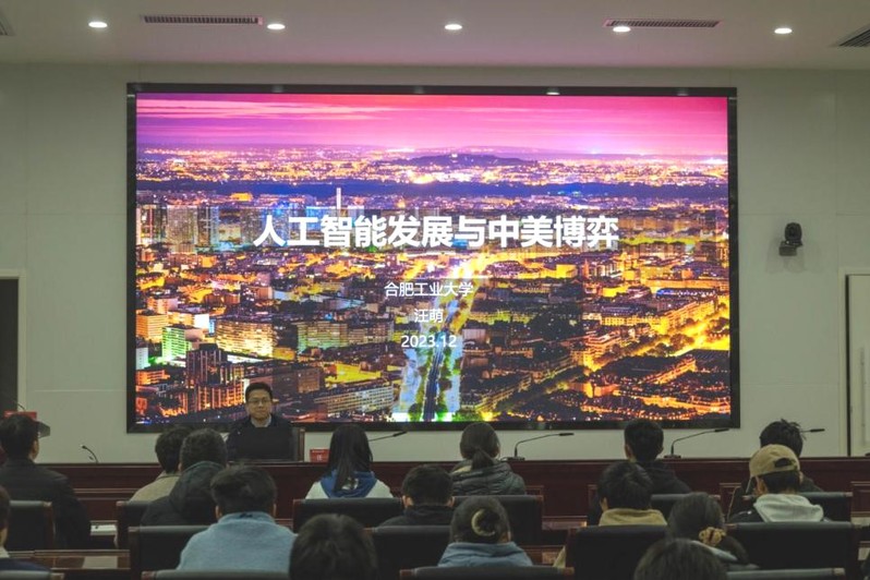 随后,汪董事长围绕人工智能的发展历史、应用领域、现状特征和未来发展启示四个方面阐述了人工智能在推动中国式现代化进程中的重要作用。他结合中美人工智能领域的发展现状进行深度剖析,分析了双方当前发展的优势与短板,特别强调了双方在互利合作和共同发展方面的潜力和机遇。汪董事长勉励师生不断提高自己的综合素质和专业能力水平,不断追求卓越、勇攀高峰,以开放合作、互利共赢的原则,加强国际交流合作,共同推进人工智能技术的发展和应用。