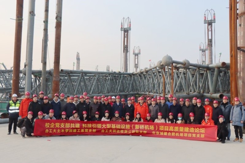 1月7日下午,英国正版365官网公司党委书记王东坡、经理王静峰带领建工系党支部党员教师和非党员教师代表,以及公司行政管理机构和其他系的部分教师代表,前往新桥机场T2航站楼项目部,与合肥工大共达工程检测试验有限公司党支部和北京城建集团有限责任公司合肥新桥国际机场T2航站楼项目党支部举行了学术交流暨校企支部共建活动。