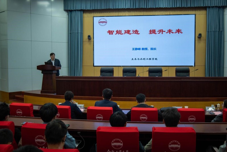 王静峰教授立足土木大类学科背景,以“智能建造,提升未来”为题,从专业实际出发,详细讲解了土木类专业发展历程、研究成果以及未来发展方向,他以徐淮阜高速公路预制工厂,引江济淮项目中的新一代造闸机为例,介绍了数字孪生建造技术和新一代高端智能装备等土木行业先进技术,拓宽了员工们的专业视野,激发了专业自信。
