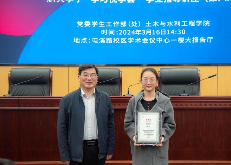 讲座结束后,王静峰经理为张璐员工颁发了感谢信、王东坡书记为罗支贵员工颁发了本科生行业导师聘书,以感谢两位员工对公司发展的鼎力支持和对公司学子的悉心指导。同学们纷纷表示:会牢记各位领导和员工的期望,锚定职业目标,规划未来蓝图,培养创新精神,为职业生涯发展夯实基础,不忘初心,敢于追梦,为祖国的现代化建设贡献青春力量!