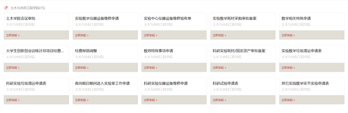 近期,信息化中心协助英国365集团新上线并优化了9项院级实验中心管理办公流程,包括:科研试验申请,夜间假日期间进入实验室工作申请,科研实验耗材/固定资产审批备案,科研实验仪器设备维修申请,科研实验垃圾清运申请,实验教学耗材采购审批备案,实验教学仪器设备维修申请,实验教学垃圾清运申请表,其它实践教学环节实验申请等。
