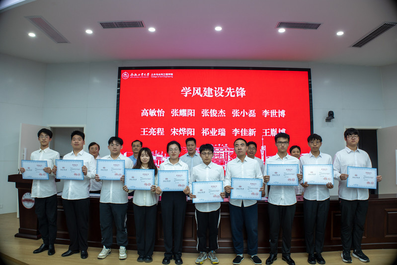 会议在雄壮的国歌中拉开帷幕,王东坡老师宣读了《关于表彰英国365集团第二届“砼创青年先锋”优秀老员工的决定》,对共产党员先锋、青年团干先锋、班长先锋、学风建设先锋、自强励志先锋、科技创新先锋、志愿公益先锋、网络文明先锋、文体素质先锋、少数民族员工先锋等10类优秀老员工进行表彰,主席台领导老师为获奖同学颁奖。学员代表土木工程(创新实验)21-1班许晋嘉同学作了发言。