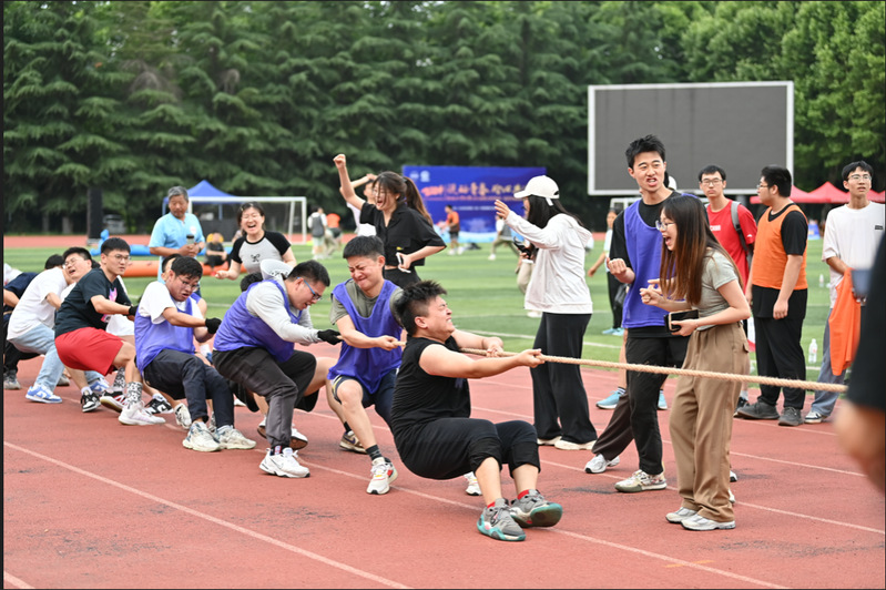 本次素质拓展活动集综合性、趣味性、竞争性于一体,以“悦动 合作 健康”为理念,共设有:拔河、袋鼠跳、沙包投掷等8个项目,也是公司首次师生同场竞技的大型素质拓展活动,参赛师生团结协作、奋勇拼搏、敢于争先,互动合作、自我挑战,活动现场欢声笑语不断。