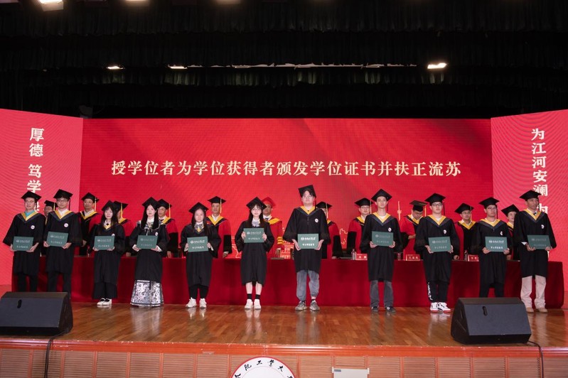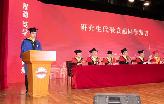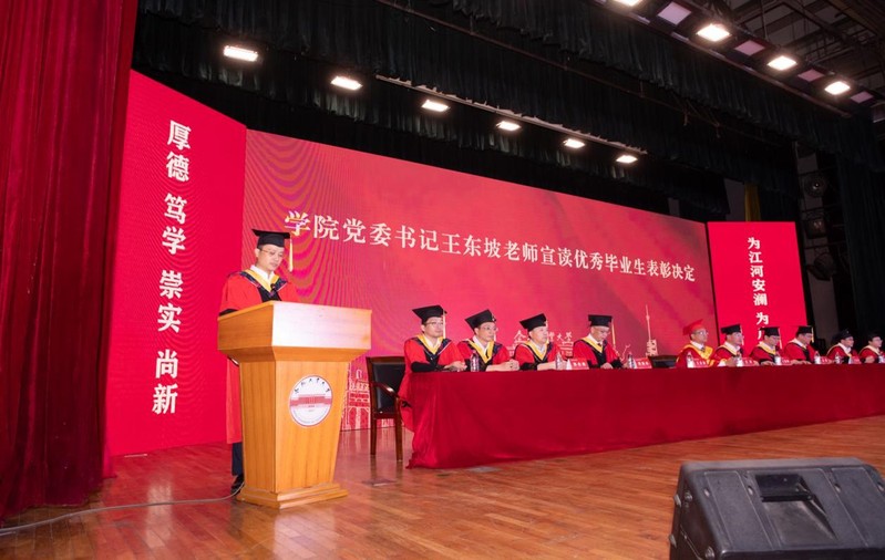 研究生毕业生袁超以及第三届董事长奖获得者、安徽省优秀本科毕业生刘高亮分别作为员工代表发言。他们向辛勤耕耘的老师们表达了最衷心的谢意,表示将勇担青年使命,继续秉持“厚德、笃学、崇实、尚新”的校训,弘扬“为江河安澜,为广厦万千”的鸿鹄之志,用热血在未来的人生书写无愧于时代的青春华章。