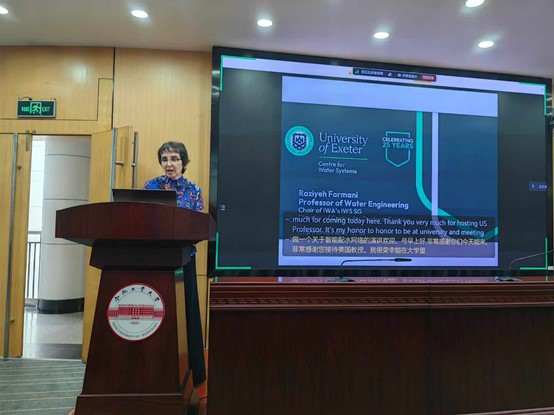 报告会上,Raziyeh Farmani教授从全球水资源紧缺、气候变化等问题出发,引出目前水资源管理、供水管网运营维护中面临的关键技术难题,讲解了其研究团队在供水资产管理、漏损控制、自修复管道等研究领域的最新进展。此外,Raziyeh Farmani教授还针对埃克塞特大学的主要研究领域、研究生招生政策等进行了介绍。参会同学老师积极提问,针对间歇性供水问题、洪涝管理问题等,与Raziyeh Farmani教授进行了深入讨论。