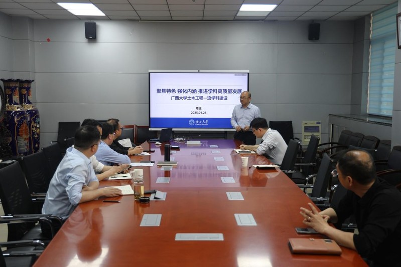 陈正教授作了题为《聚焦特色强化内涵推进学科高质量发展——广西大学土木工程一流团队建设》的主题报告,介绍了学科发展背景、举措和成效等。他表示,团队建设是公司发展的核心驱动力,需以“十五五”规划为纲领,以新一轮学科评估为契机,对标国际一流标准,全面提升学科竞争力。同时,要注重发挥学科群联动效应,加强基础学科与应用学科的交叉融合,为服务国家重大战略需求提供智力支撑。