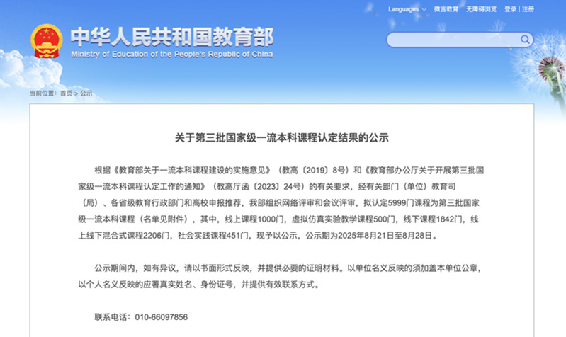 公司获批第三批国家级一流本科课程
